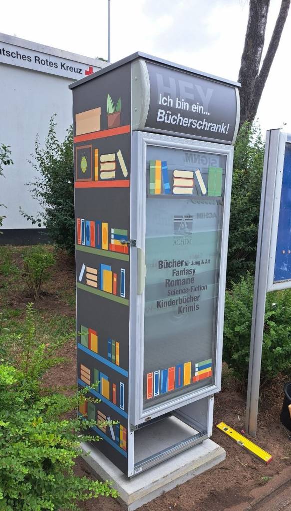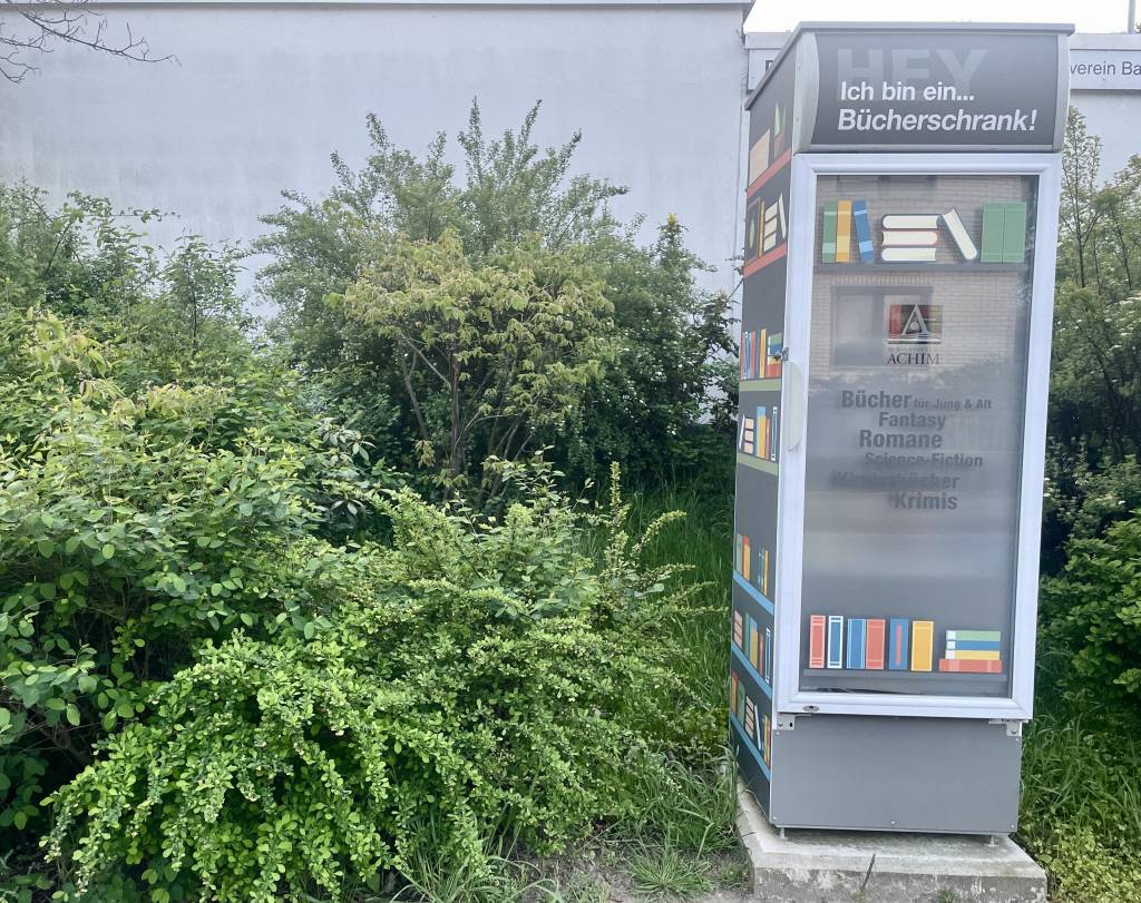 Seit dem Sommer 2023 gibt es in Baden in der Bahnhofstr. 31 einen Bücherschrank, den die Bürgerstiftung organisiert, aufbereitet und aufgestellt hat. Zwei Patinnen aus dem Aktivkreis halten ihn in Ordnung, entfernen ggf. unerwünschte Literatur und ergänzen den Bestand aus den Vorräten für den Büchermarkt.