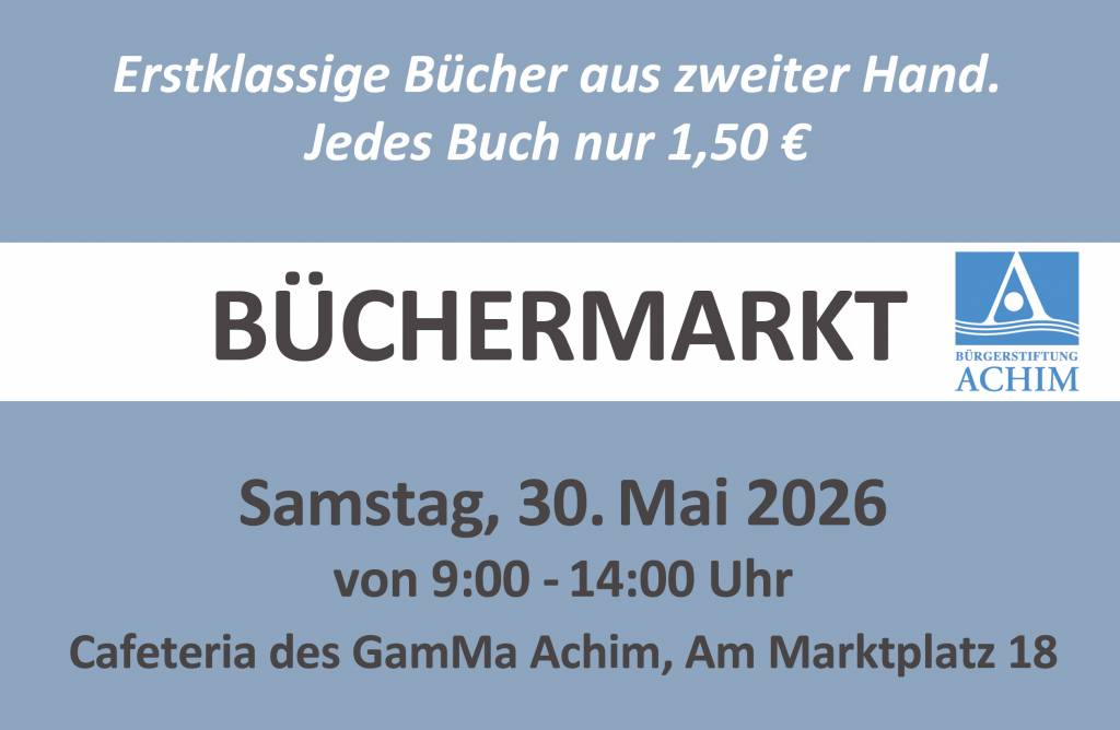 Am Samstag, den 30.05.2026 bietet der Büchermarkt der Bürgerstiftung von 09:00 bis 14:00 Uhr im Gymnasium am Markt wieder gut sortierten Lesestoff für alle Bücherwürmer und Leseratten an: